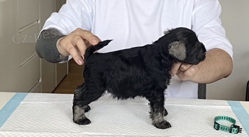Štěňátka se rodí u nás doma a jsou vychovávána s velkou pozorností a láskou. Malý knírač je malý pejsek s velkým srdcem, který vás bude milovat nejvíc na světě, je šťastný, otevřený, zvědavý, sebevědomý a krásný.