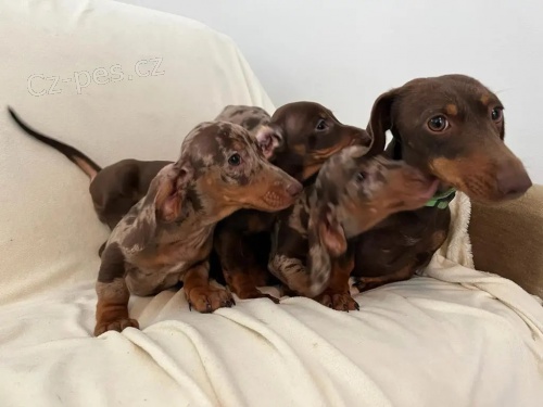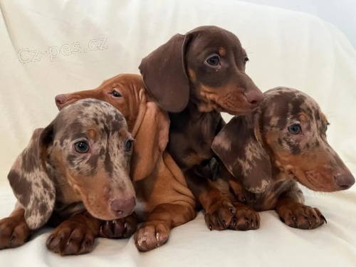 Štěňata jezevčíků jsou všechna očkovaná, odčervená a milují hru s dětmi a jinými zvířaty.