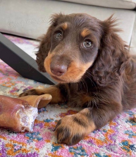 Miniaturní štěňata dlouhosrstého trpasličího jezevčíka.Detail inzerátu ID 158419