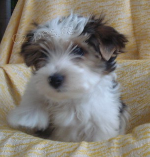 Prodám štěňátko - pejska bílého jorkšírka, biewera bez PP. Pejsek je ihned k