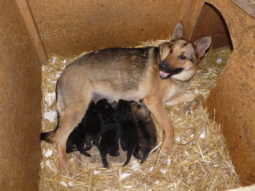 Narodila se nám štěňátka Německých ovčáků s PP z pracovní linie, 5 pejsků a 4 fenky zbarvení tmavě vlkošedé a černé s pálením (menší znaky více černé) otec štěňátek je celočerný mohutný pes Bor z Otova dvoru pes s velkým sebevědomím, s vrozenou dravostí, bojovností a nezkrotným temperamentem, což uplatňuje především při obraně, má velmi razantní obrany s plnými zákusy.