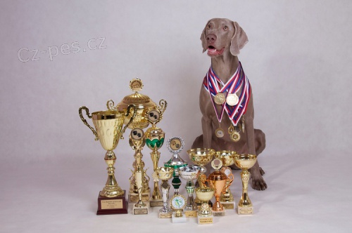 Pes "Phoenix" po světových šampionech (matka Leeloo 2x světová vítězka, Otec "Mac" jedním z nejznámějších výmarů světa), pracovně i výstavně též velmi úspěšný a perspektivní. Pracovní zkoušky (TAN) vyhrál jako nejmladší pes.