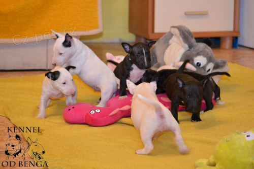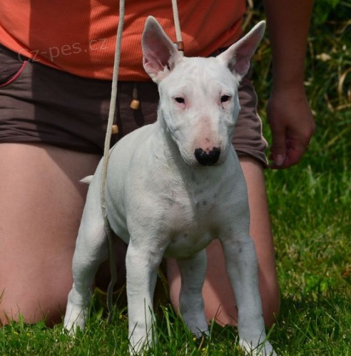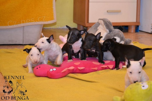 Miniaturní Bulterier s PP. Chovatelská stanice odBenga prodá štěňata Miniaturního Bulteriera s pp, bílou a žíhanou fenku, dále pejska z druhého vrhu. vhodné na chov a výstavy nebo jen jako skvělého aktivního kamaráda do rodiny. Minibulík miluje svou rodinu i cizí lidi. Fenky jsou z kvalitního zahraničního krytí otec pochází z Německa Diabolo von der Alten Veste, matka pochází z Polska Tequila Ewimark Rakownia, je matkou několika šampionů. Fenky i pejsek, jsou zdraví na oční onemocnění luxace oční čočky. Rodiče jsou zdravotně tetováni. Fenky jsou plně očkované, odčervené, s mikročipem, europasem a průkazem původu. Jsou již k odběru. Pouze vážní zájemci o toto plemeno. www.odbenga.cz mail@odbenga.cz 725290069
