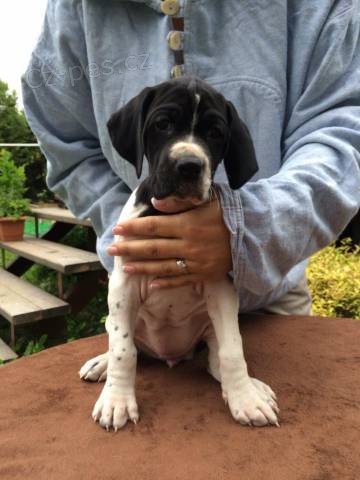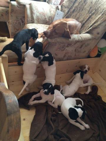 Zadáme štěňata Pointra. Štěňata se narodila 25.7.2014, k odběru budou koncem září 2014. Máme volné 2 fenečky (bílé s černými znaky) a 2 pejsky (bílý s černými znaky, bílý s žemlovými znaky). Štěňata mají průkazy původu, budou očkovaná, odčervená a tetovaná. Matka Mole z Mešínské hájovny. Datum narození 20.4.2011, výška 65, chrup plnochrupá, nůžkový skus, Výstavy: výborná, CAC DKK 0/0 zoušky vloh I.cena, 221 bodů, 2.místo Otec ICH. SK GCH. Assan Biely kostol Datum narození: 5.9.2006, Výška: 67 cm, Chrup: plnochrupý, nůžkový skus Zkoušky vloh II.cena, NFT 2008 - Exc. 16 bodů, NFT 2009 - Very good 15 bodů, Podzimní zkoušky I. cena, 223 bodů, Barvářské zkoušky ohařů I. cena, Speciální zkoušky vodní práce I. cena, r.CACT, Lesní zkoušky I. cena, 240 bodů, Všestranné zkoušky I. cena, 424 bodů, CACT, Memoriál Š.Krasňanského (VSS) I. cena, 438 bodů, CACT. Web: www.pointer.estranky.cz