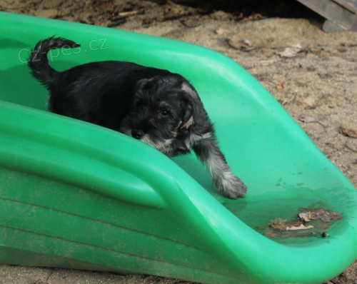 Knírač střední pepř a sůl - očkovaný, odčervený, čipovaný, socializovaný pejsek s PP po výstavně úspěšných rodičích se všemi zdravotními vyšetřeními vč. genetického testu na dědičné onemocnění srdce. Odběr možný ihned.