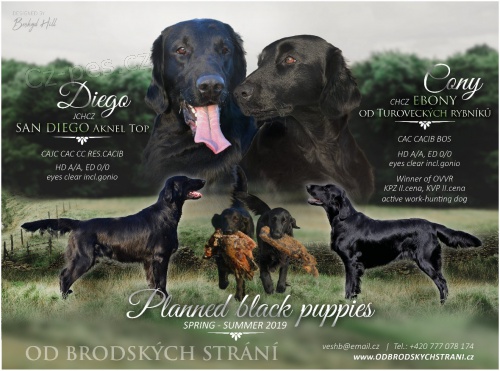 Flat coated retriever - CHS od Brodských strání prodá novým majitelům štěňátka Flat coated retrevera s PP. Štěňátka jsou socializována, zvyklá na děti, odchována v RD se zahradou, očipována s kompl. chovatelským servisem.