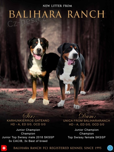 Chovateľská stanica s 20ročnou tradíciou chovu Veľkého švajčiarskeho sal. psa zadá krásne šteniatka s PP po výborných rodičoch, otec je imp. Holandsko - CH., JCH. 4 x CACIB, BOB, Top Jr. GSMD pes 2018 Junior, CH. Karhunkierros Gaetano, Best in Show Junior - uplne nepribuzna linia pre ČR, a SR, jeho prvý vrh. Matka je CH., JCH. Unica from Balihara Ranch - matka Svetoveho vitaza ml. 2018 z Amsterdamu Ixiona, dcera impozantného, silného 70 kg psa import Rusko - Multi šampión - Interšampión, Grand CH. Sennenhund Rossii Inferno, šampión Maďarska, Slovenska, Srbska, Klubový Junior šampión, Junior Šampión SR, H, Najlepší VŠSP mladý pes i dospelý pes SKSSP - import Rusko, syn Multi CH. 3x World Winner, 2 x European Winner ICH. Sennenhund Rossii Shangri-LA. Práve sú na odber, iba sučky. Obaja rodičia HD- A, ED 0/0, OCd 0/0. Cena od EUR 700 neštandard a od EUR 1.000 Štandard - podľa individuálnej kvality, na chov a výstavy, alebo iba ako rodinný priateľ, s EU pet pasom a min. 2 očkovaniami a PP. Kontakt s novými majiteľmi a poradenstvo v oblasti chovu a výstav je samozrejmosťou. Bývame v Častej, okres Pezinok. Viac info na Liptajova.jana@mail.t-com.sk alebo +421918850615 Web: http://www.schweizersennenhunde.eu