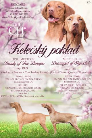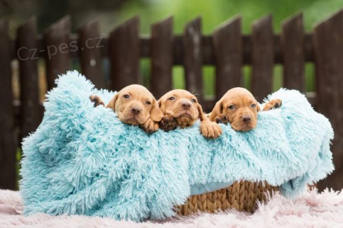 Maďarský ohař krátkosrstý s PP fenky i pejsci Text: Maďarský ohař krátkosrstý s PP- k zadání štěňátka narozená 5.5.2019 po těchto rodičích Otec: MultiCh. Beauty of Fire Benigno (imp RUS) DKK 0/0, ramena + oči bez nálezu, short/long N/N zkoušky: ZV, PZ, VP, Karv. pohár II. c Matka: Multi ch. Dreamgirl of Skyrocket (imp HU) DLK 0/0 ramena bez nálezu, short/long N/N Zkoušky: ZV, PZ, Odběr po 5.7, nebo dohodou, Při odběru budou očkovaná, čipovaná, pet pas, kupní smlouva, uvítám trvalý kontakt s novými majiteli, cena psi od 13, fenky od 16.tis. http://www.kelecskypoklad.com/wp