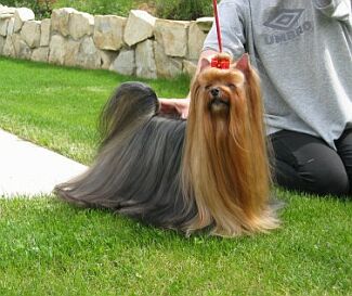 Typická ušlechtilá hlava, tmavé oko, správně nasazené, nesené uši, výborný krk, rovný hřbet, správně nasazený, nesený ocas, srst výborné kvality i délky, krásné barvy, správná mechanika pohybu.